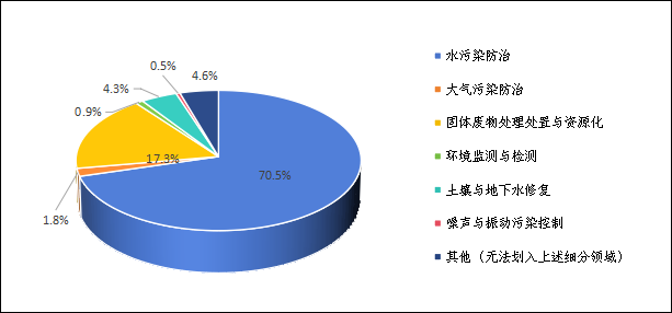 列入統(tǒng)計(jì)范圍環(huán)保企業(yè)主要分布于水污染防治、大氣污染防治等七個(gè)細(xì)分領(lǐng)域。以水污染防治為主,見圖7,該領(lǐng)域企業(yè)數(shù)量占比70.5%,貢獻(xiàn)八成以上行業(yè)營(yíng)業(yè)收入以及七成以上的環(huán)保業(yè)務(wù)收入。