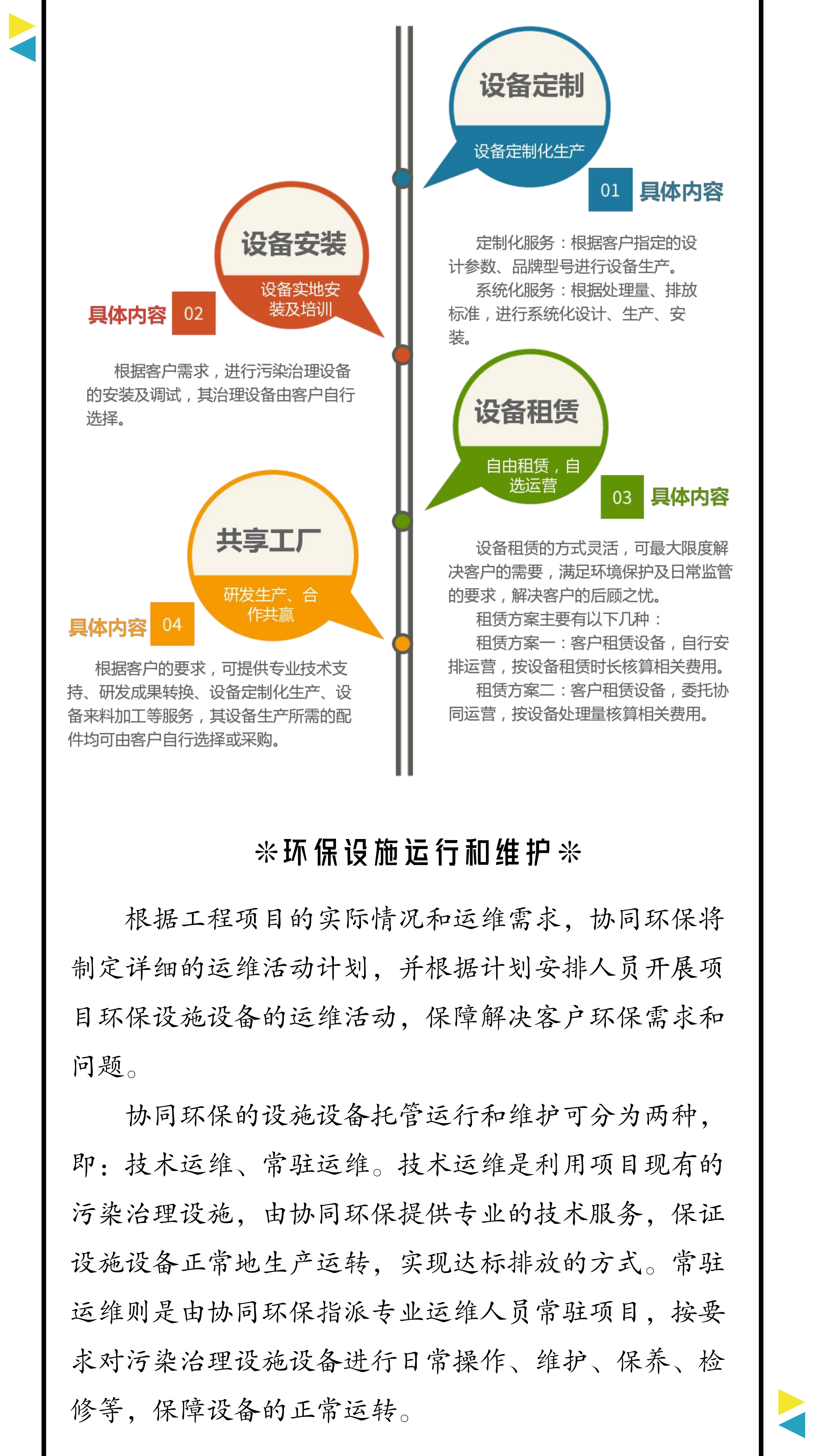 協(xié)同環(huán)保采用“共享工廠”的經(jīng)營方式,爭取實現(xiàn)全面解決客戶的需求。根據(jù)需求采取多種生產(chǎn)方式,為客戶提供定制化服務(wù),包括: