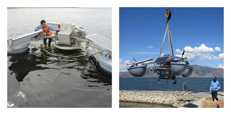 水上對太陽能驅(qū)動水生生態(tài)設(shè)備進行調(diào)試,以確保設(shè)備能夠正常運行