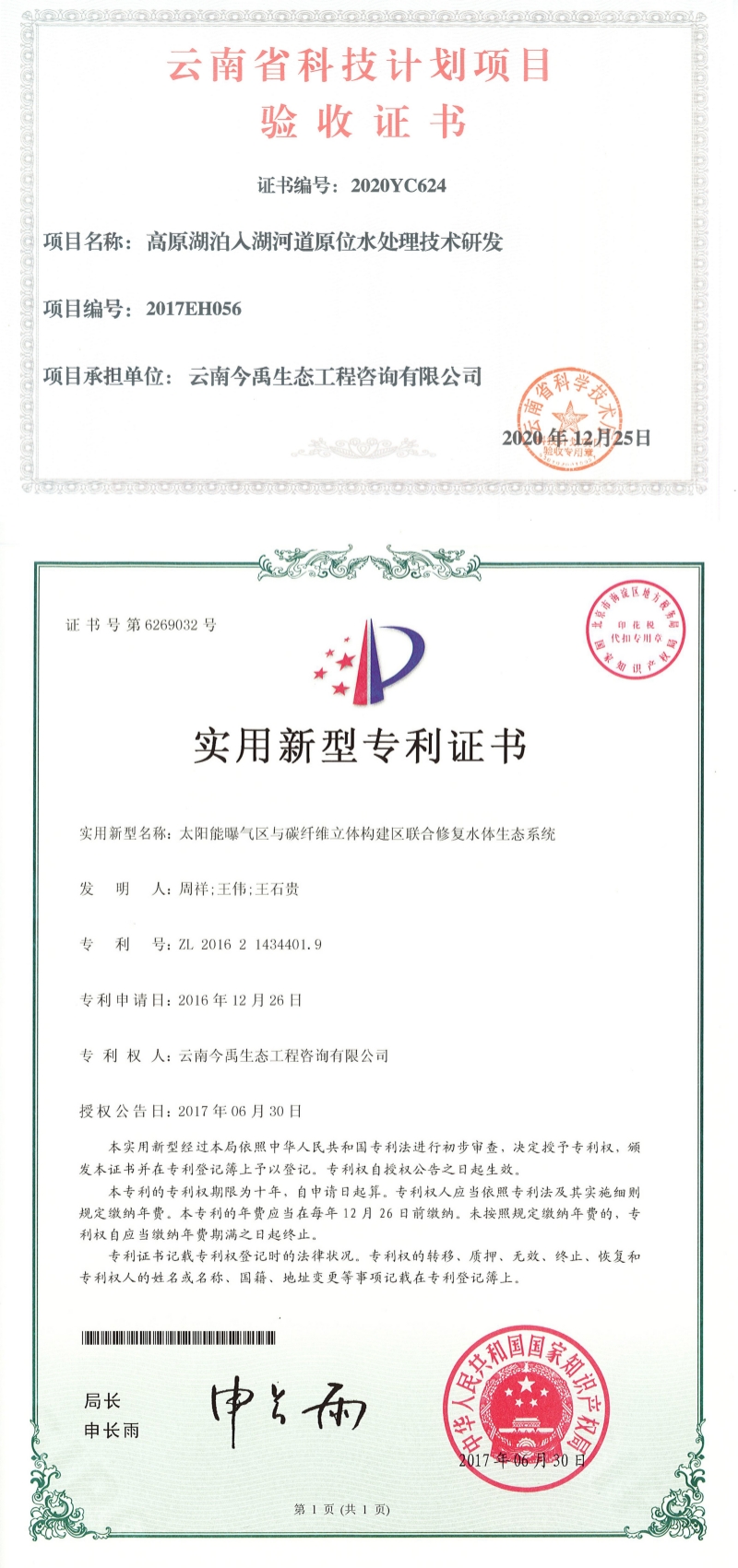 2、云南省科技計劃項目“高原湖泊入湖河道原位水處理技術(shù)研發(fā)”