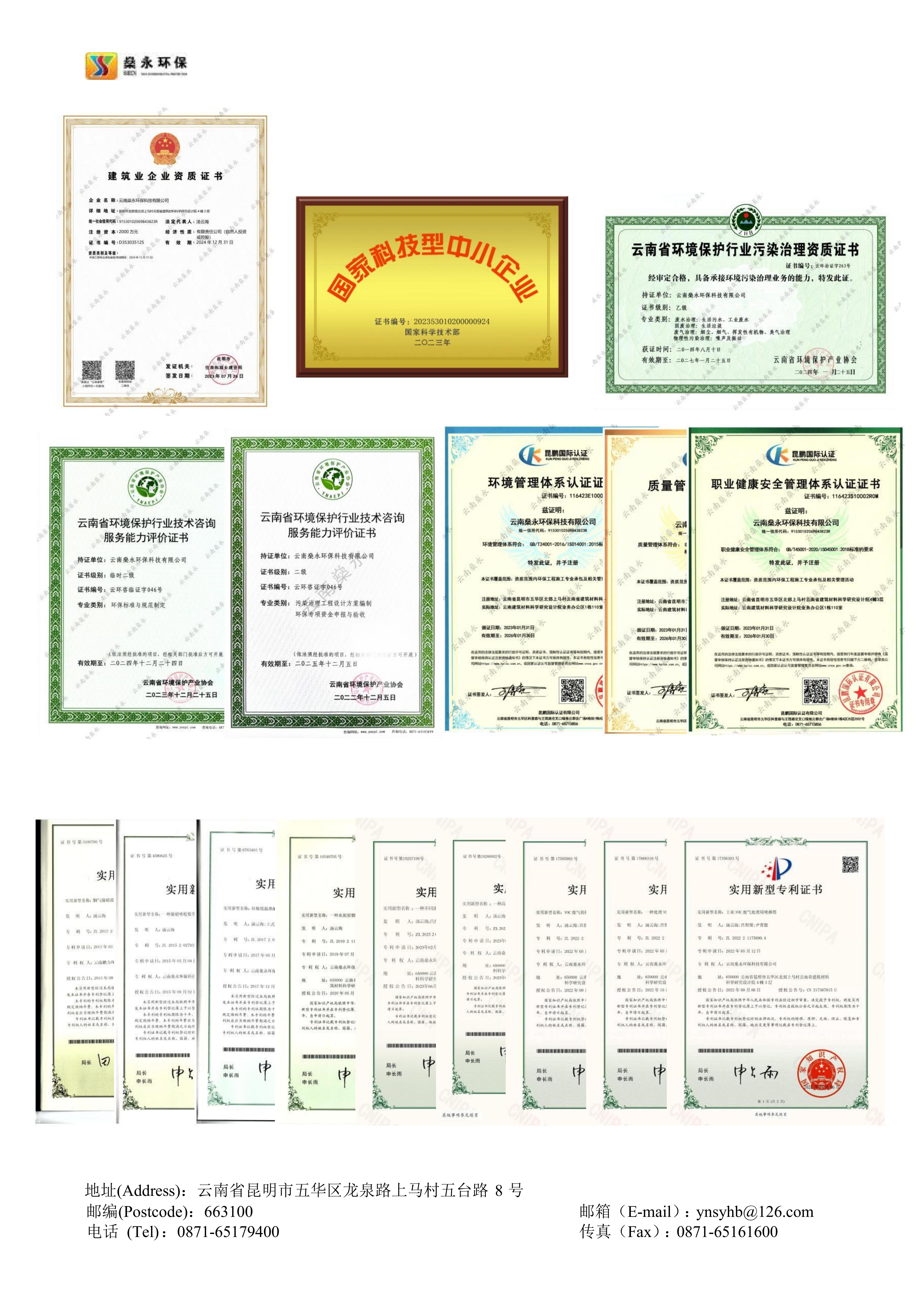 燊永公司堅(jiān)持“創(chuàng)新、協(xié)作、共贏”的價(jià)值觀,以“專業(yè)、專心、專注”為服務(wù)理念,以“求實(shí)、求是、求精”為質(zhì)量宗旨,為客戶提供優(yōu)質(zhì)、高效、貼心的服務(wù)。公司獲得國(guó)家專業(yè)部門頒發(fā)的《環(huán)境工程專業(yè)承包三級(jí)》資質(zhì)、《污染治理乙級(jí)》資質(zhì)、《企業(yè)信用等級(jí)A級(jí)》證書(shū)、《云南省科技型中小企業(yè)》認(rèn)定證書(shū)、《ISO9001/GBT50430質(zhì)量管理體系》證書(shū)、《ISO14001環(huán)境管理體系》證書(shū)、《ISO45001職業(yè)健康安全管理體系》證書(shū)等多項(xiàng)榮譽(yù)和多項(xiàng)的專利技術(shù)。